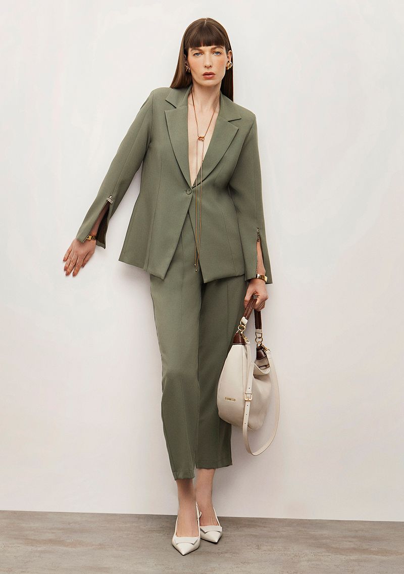 Blazer Iódice Ajustado Manga Longa Padrão Verde: Um toque de sofisticação e elegância para o seu guarda-roupa. Inspirado na estética rica e única do Japão, este blazer é uma peça chave para transitar entre o dia e a noite com confiança e estilo. Confeccionado com poliéster, viscose e elastano, oferece conforto e ajuste perfeito ao corpo. Suas cores vibrantes e design moderno refletem a essência da alfaiataria contemporânea, ideal para ocasiões casuais e formais. Combine com calças de alfaiataria ou jeans e arrase em qualquer evento. A coleção Outono Inverno 2024/25 da Iódice celebra a tradição e inovação, capturando a essência do design japonês com um toque moderno. Aposte neste blazer e destaque-se com um look autêntico e poderoso. Acessórios não acompanham as peças.