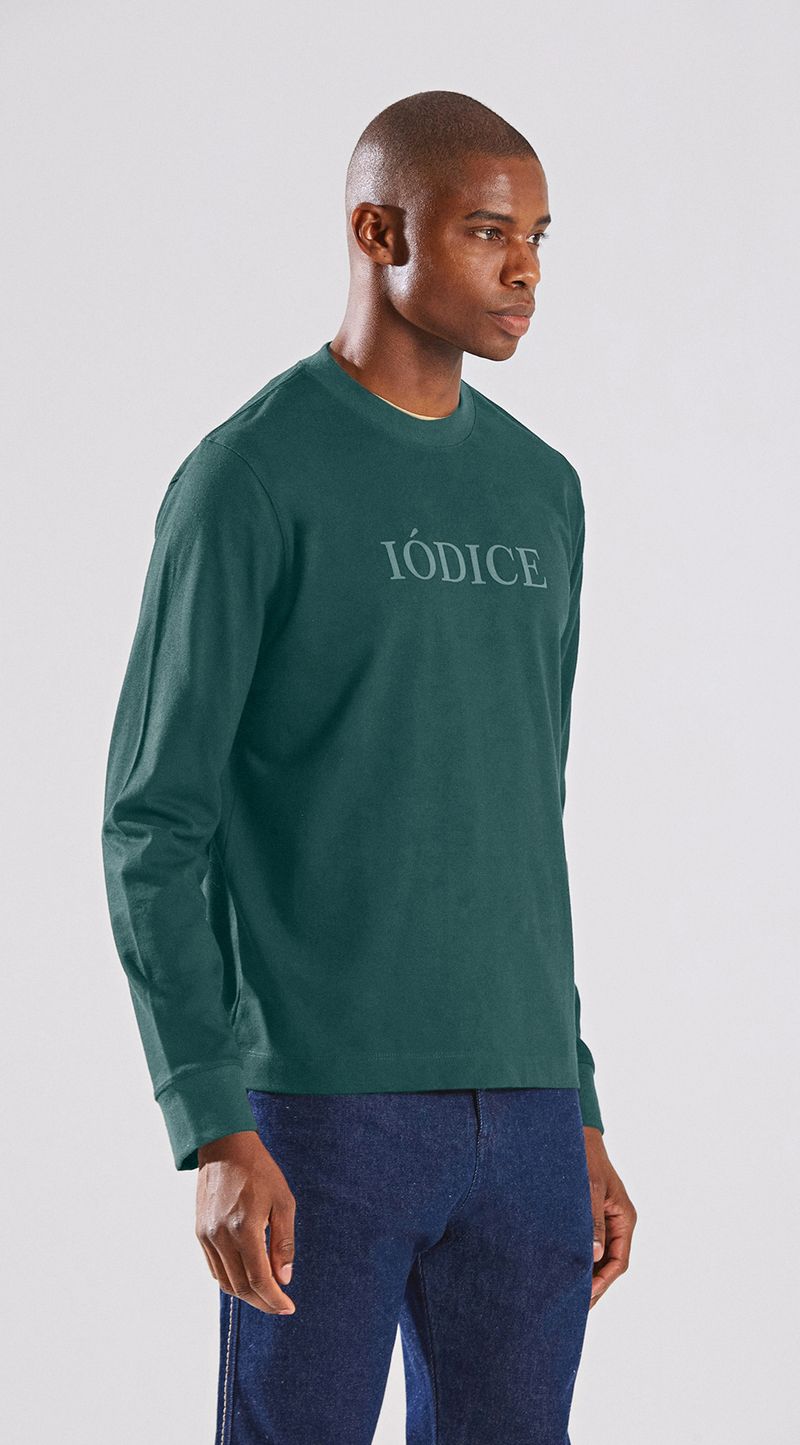 Blusa Decote Redondo Manga Longa Com Silk Azul