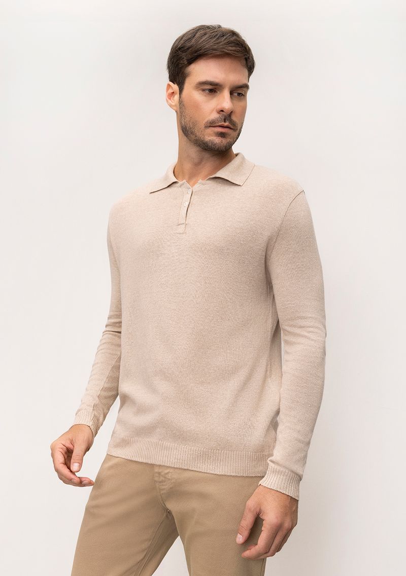 Blusa Gola Polo Manga Longa Tricot Bege