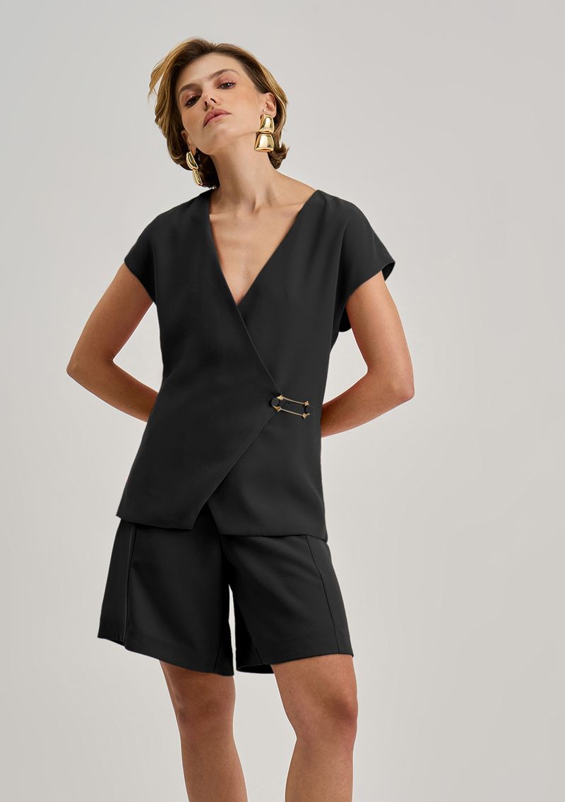 OUTLETColeçõesBlusas e BodyBlusa Iódice Ajustada Decote V Manga Curta Padrão Preto