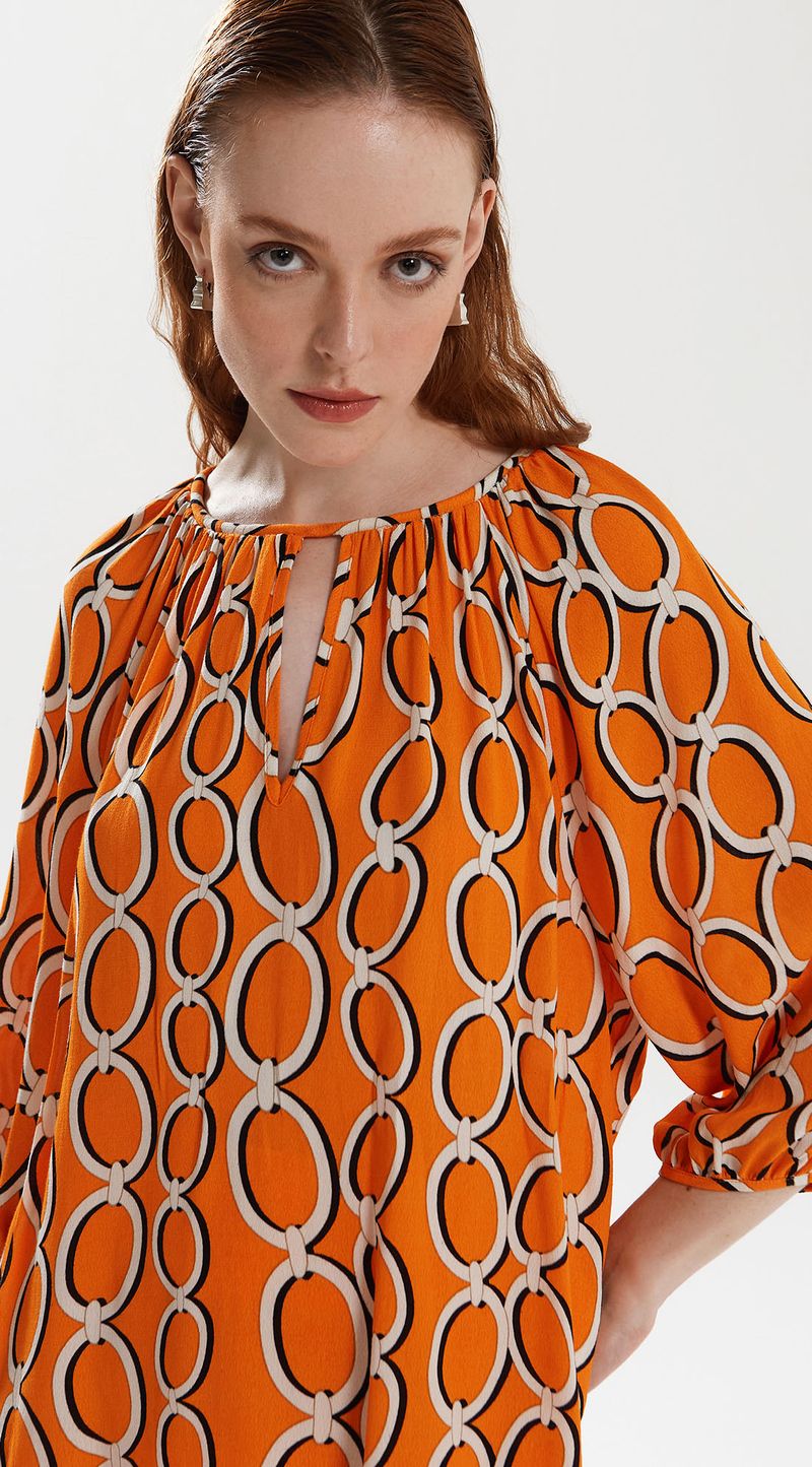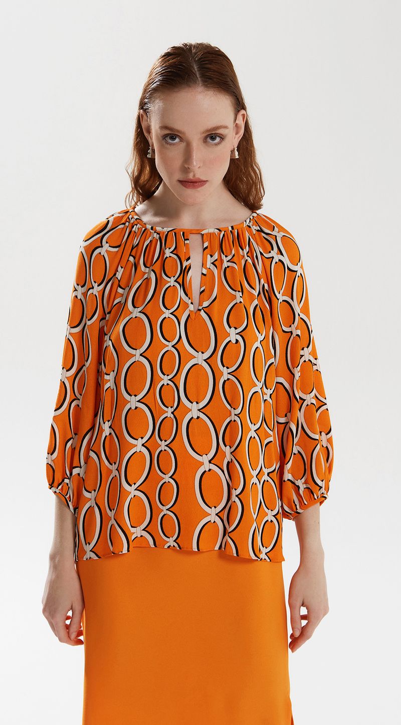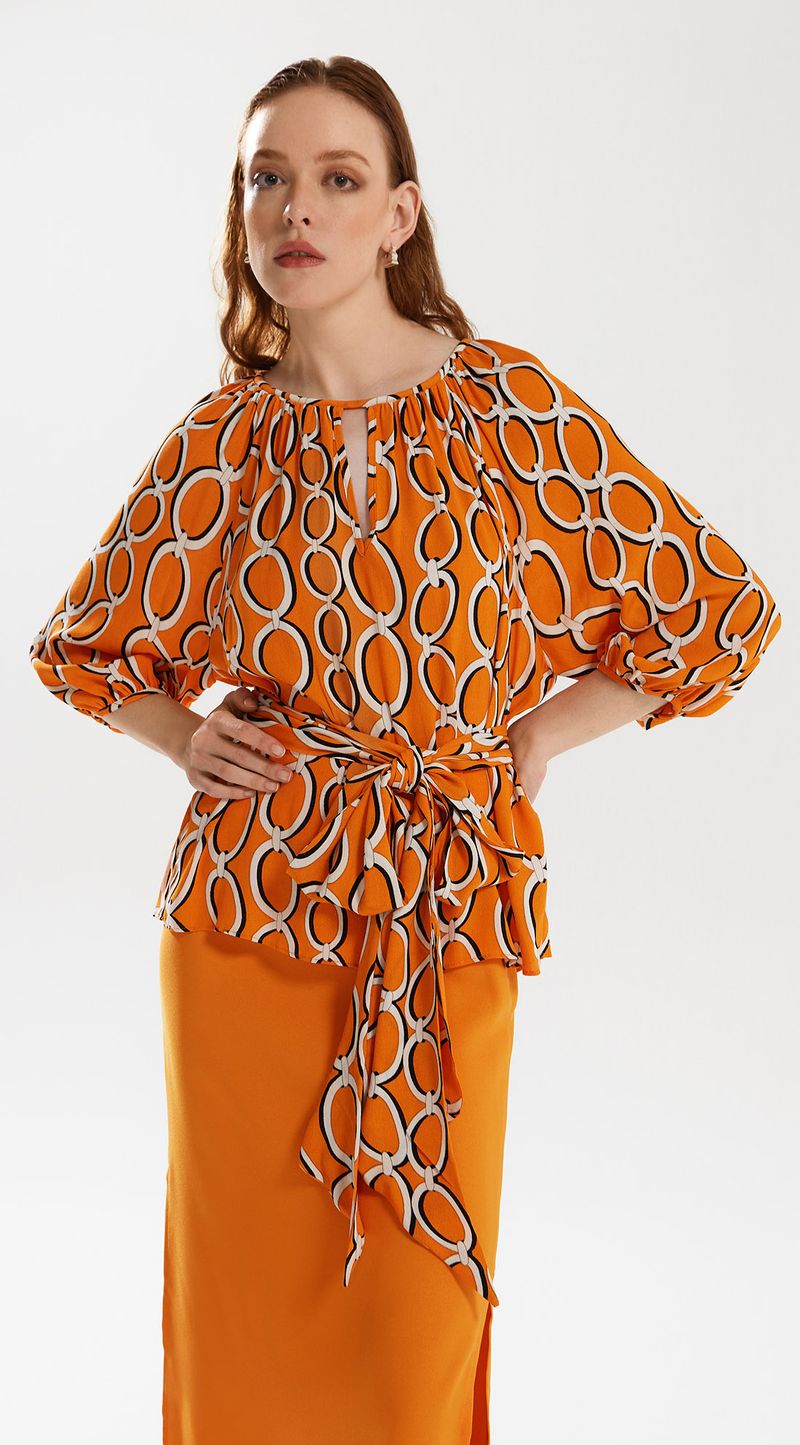 Blusa Iódice Decote Canoa Manga 3/4 Com Cordão Laranja