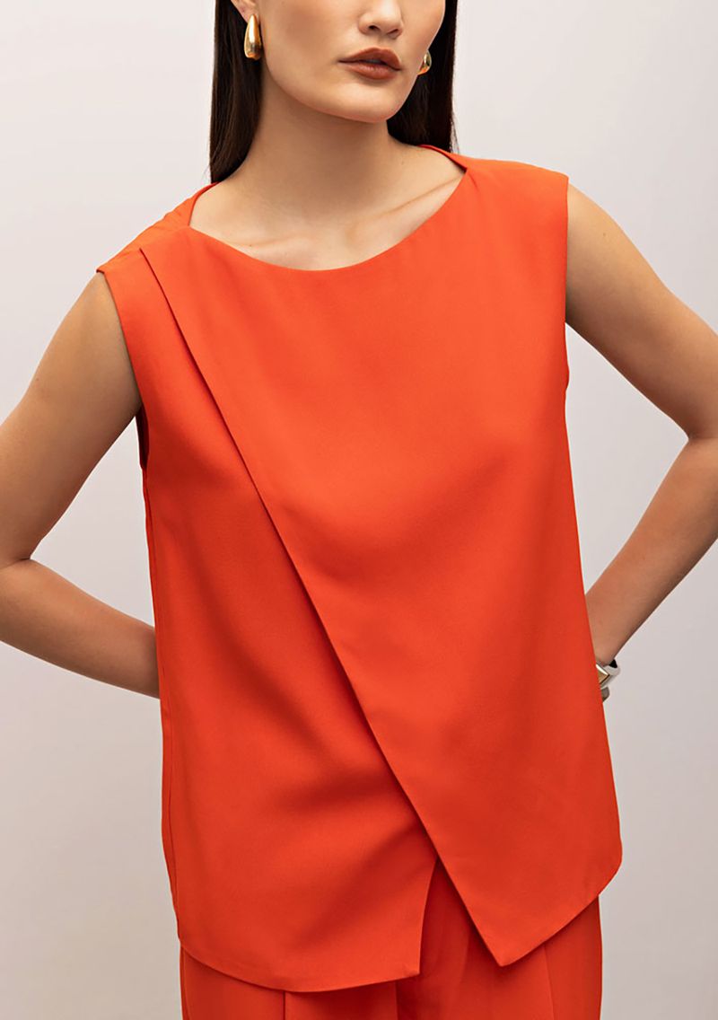 Blusa Iódice Decote Canoa Sem Manga Transpasse Frente Laranja