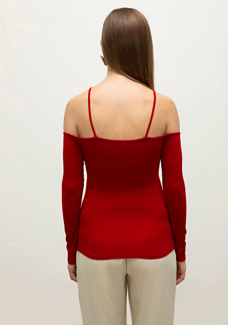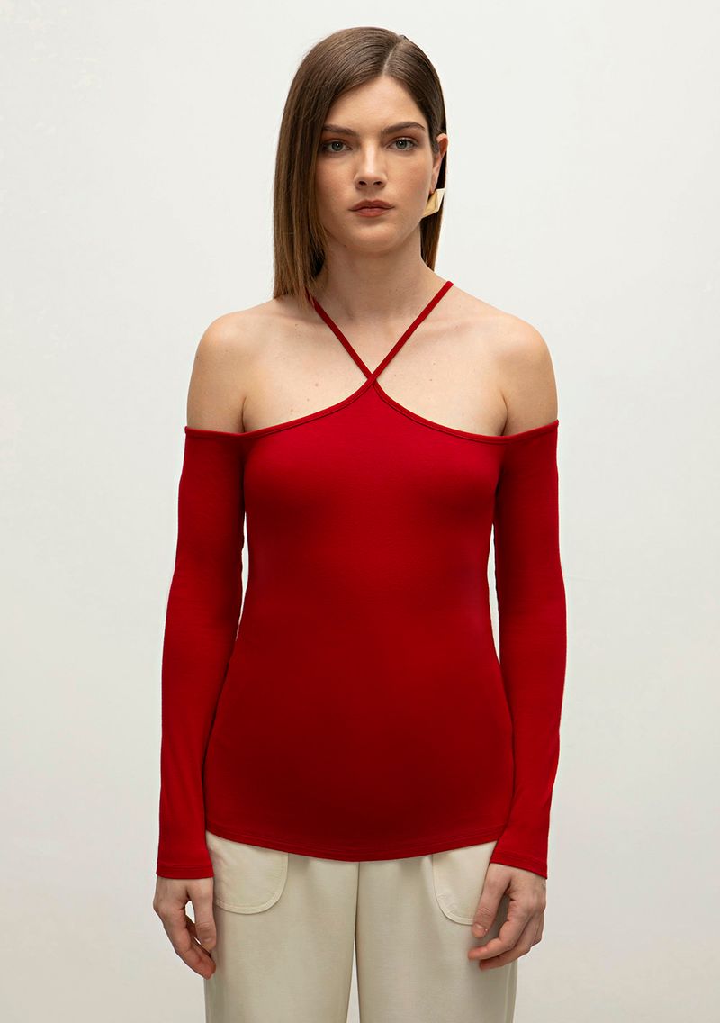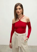 OUTLETColeçõesBlusas e BodyBlusa Iódice Decote Diferenciadao Manga Longa Com Recorte Vermelho
