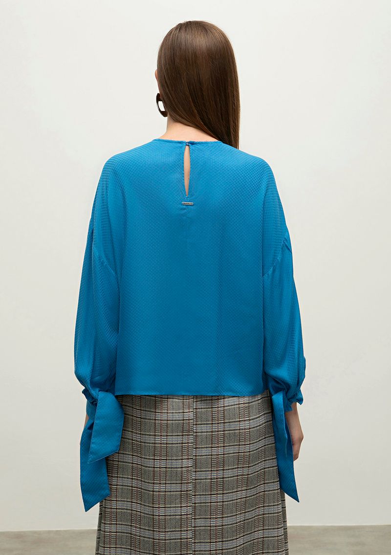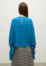Blusa Iódice Decote Redondo Manga 7/8 Detalhe Manga Azul