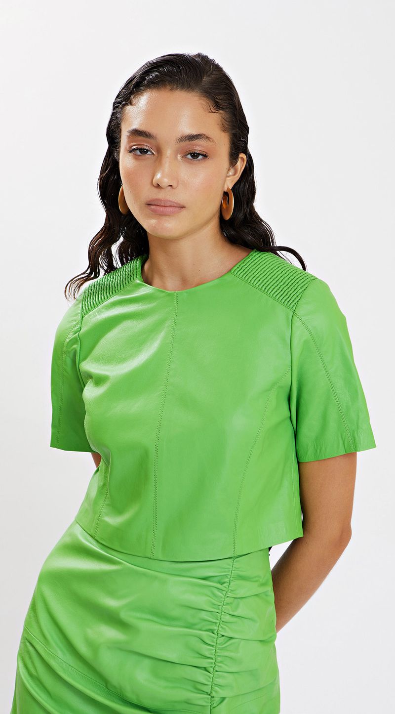 Blusa Iódice Decote Redondo Manga Curta Detalhe Nervura Verde