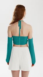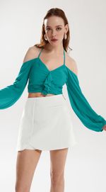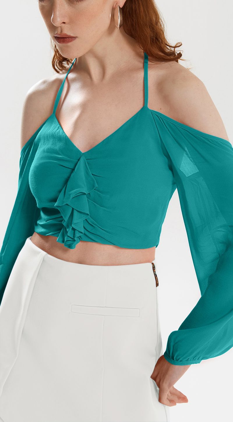 Blusa Iódice Frente Única Manga Longa Com Babado Verde Claro