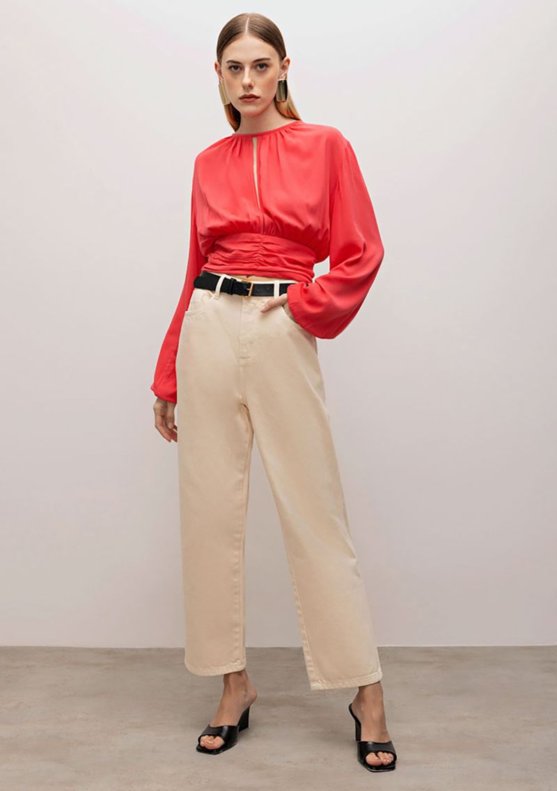 Blusa Iódice Gola Alta Manga Longa Abertura Frente Rosa
