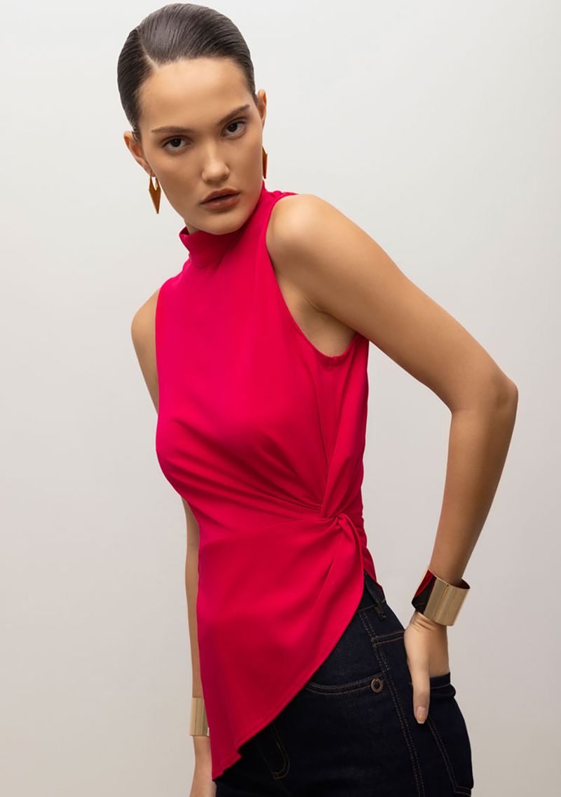 Blusa Iódice Gola Alta Sem Manga Torção Frente Pink