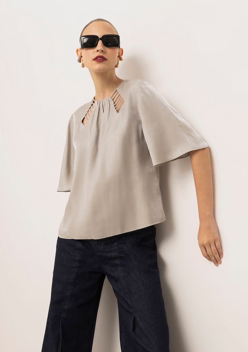 Blusa Iódice Solta Decote Careca Manga Curta Padrão Cinza