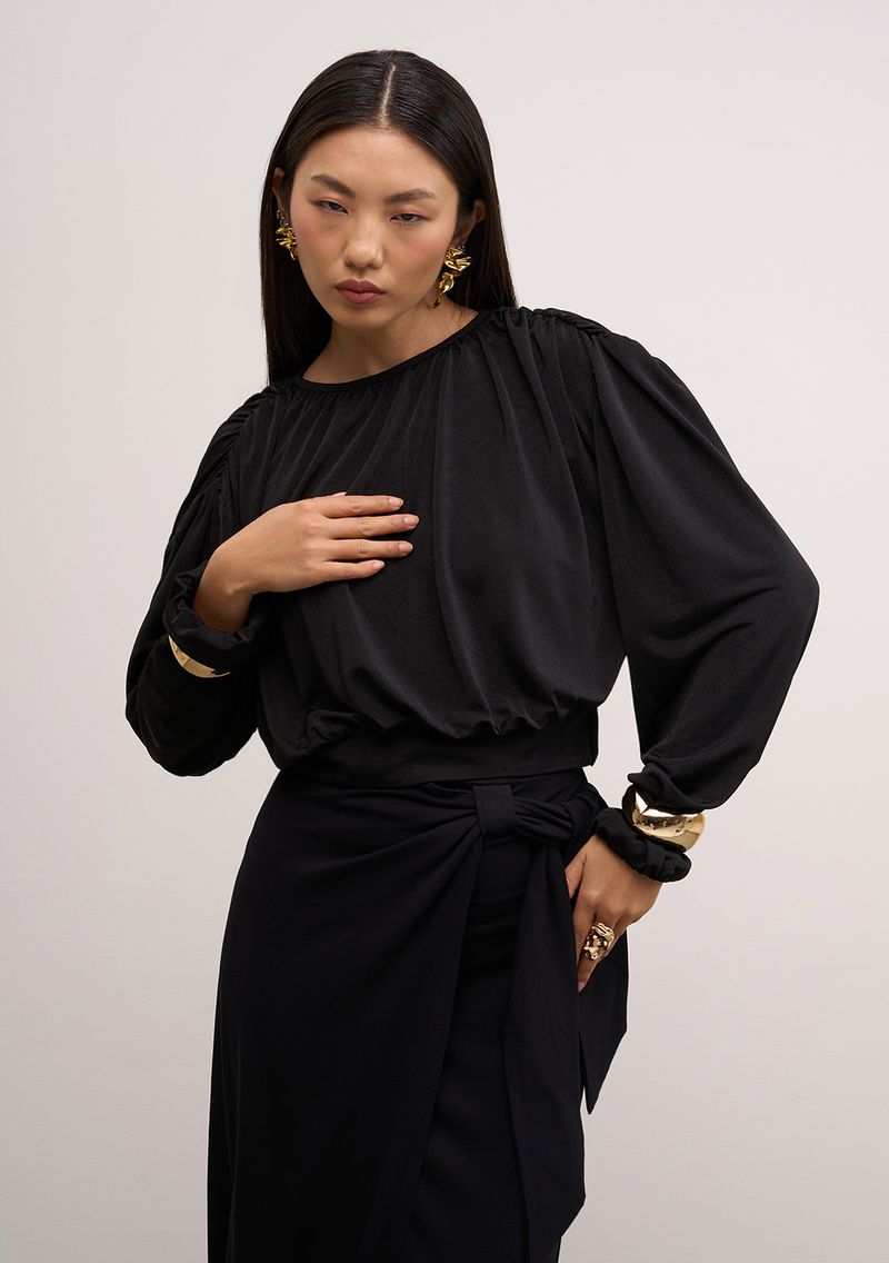 Eleve seu estilo com a Blusa Iódice Solta Decote Careca Manga Longa Cropped Preto, uma peça que une a sofisticação do passado com a leveza do presente. Com um design que conversa com a essência neoclássica, esta blusa é perfeita para ocasiões casuais, garantindo elegância e conforto. Feita de poliéster e elastano, abraça seu corpo de forma suave. Ideal para combinar com saias midi ou calças de cintura alta, criando um visual que vai do escritório ao jantar especial. Envolva-se na paleta neoclássica e sinta-se confiante em cada movimento. Nota: Acessórios não acompanham as peças.