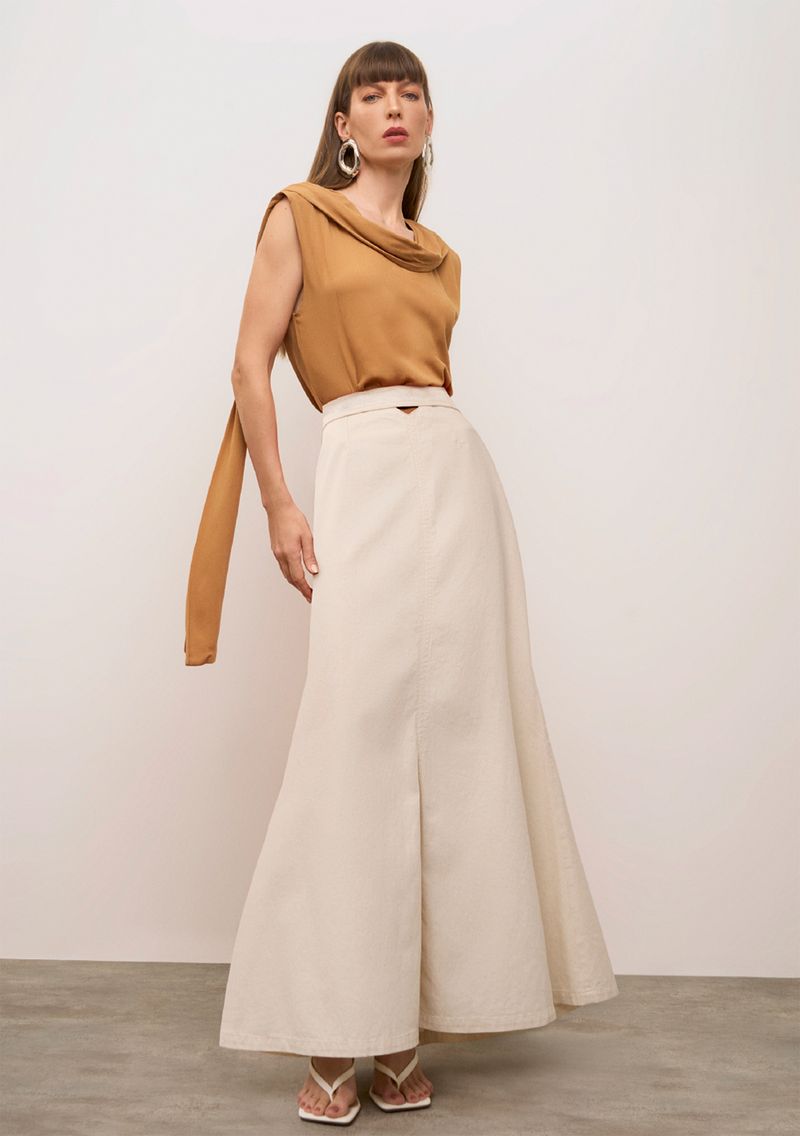Blusa Iódice Solta Decote V Manga Curta Padrão Bege
