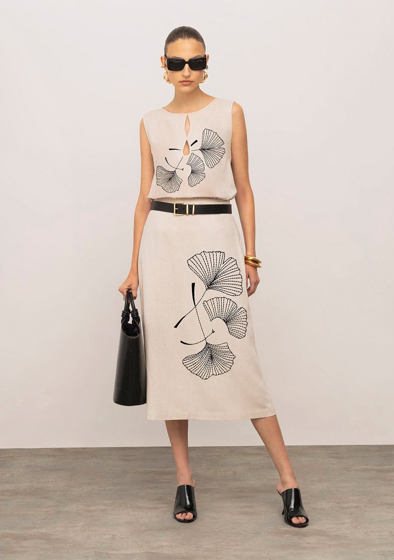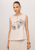 Blusa Iódice Solta Decote V Sem Alça Padrão Bege