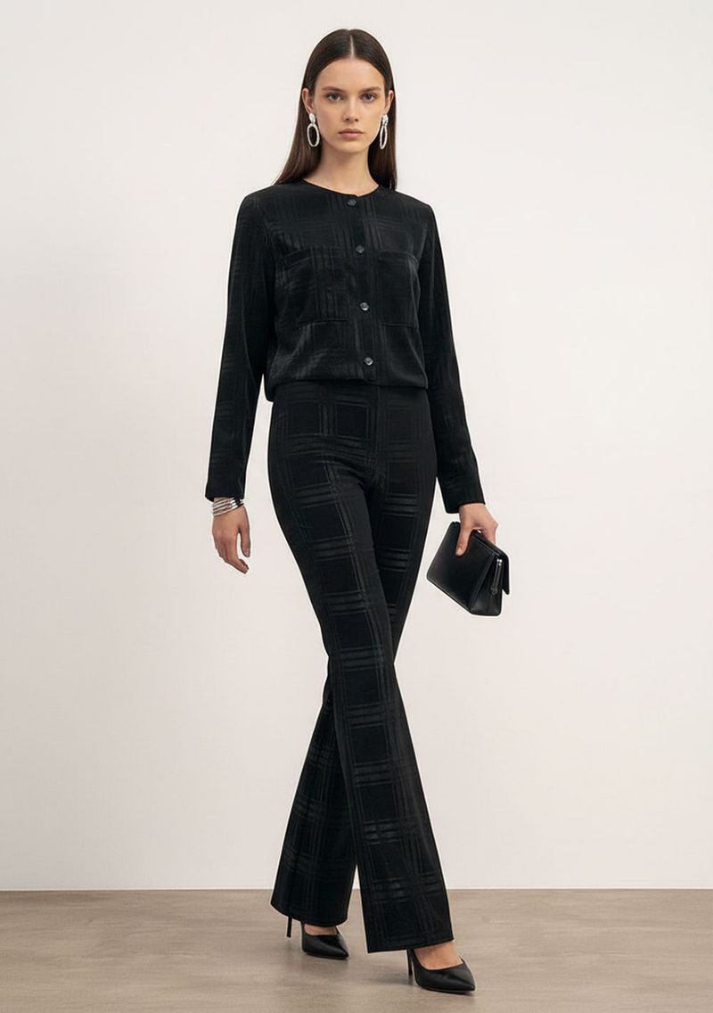 Apresentamos a Calça Flare Alta Preto da Iódice, uma peça indispensável para quem busca sofisticação e estilo nas ocasiões especiais. Com um corte flare que valoriza a silhueta, essa calça de alfaiataria é perfeita para combinar com blusas elegantes ou camisetas básicas, garantindo um look marcante e contemporâneo. Feita em poliéster, oferece conforto e um caimento impecável, ideal para noites inesquecíveis. A Calça Flare é uma escolha versátil que se adapta a diferentes momentos, seja para um jantar elegante ou uma festa descontraída. Aposte em acessórios como brincos statement e um salto alto para completar o visual e destacar sua personalidade vibrante. Composição: 100% poliéster e forro de 97% poliéster e 3% elastano. Os acessórios não acompanham as peças.