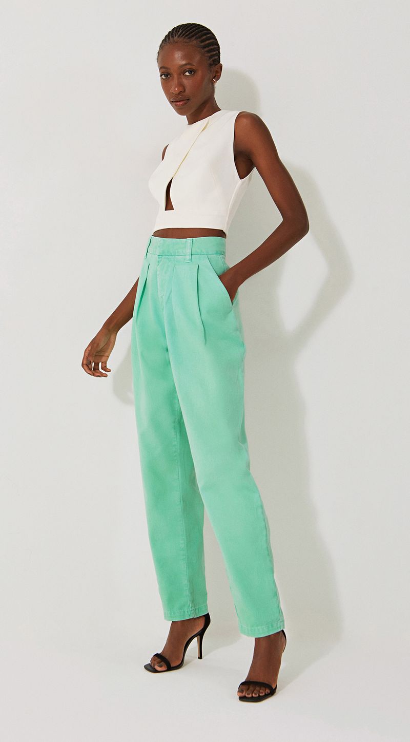 Calca Iódice Alfaiataria Cós Alto Com Pregas Verde