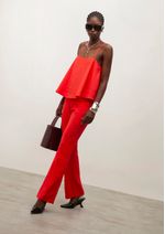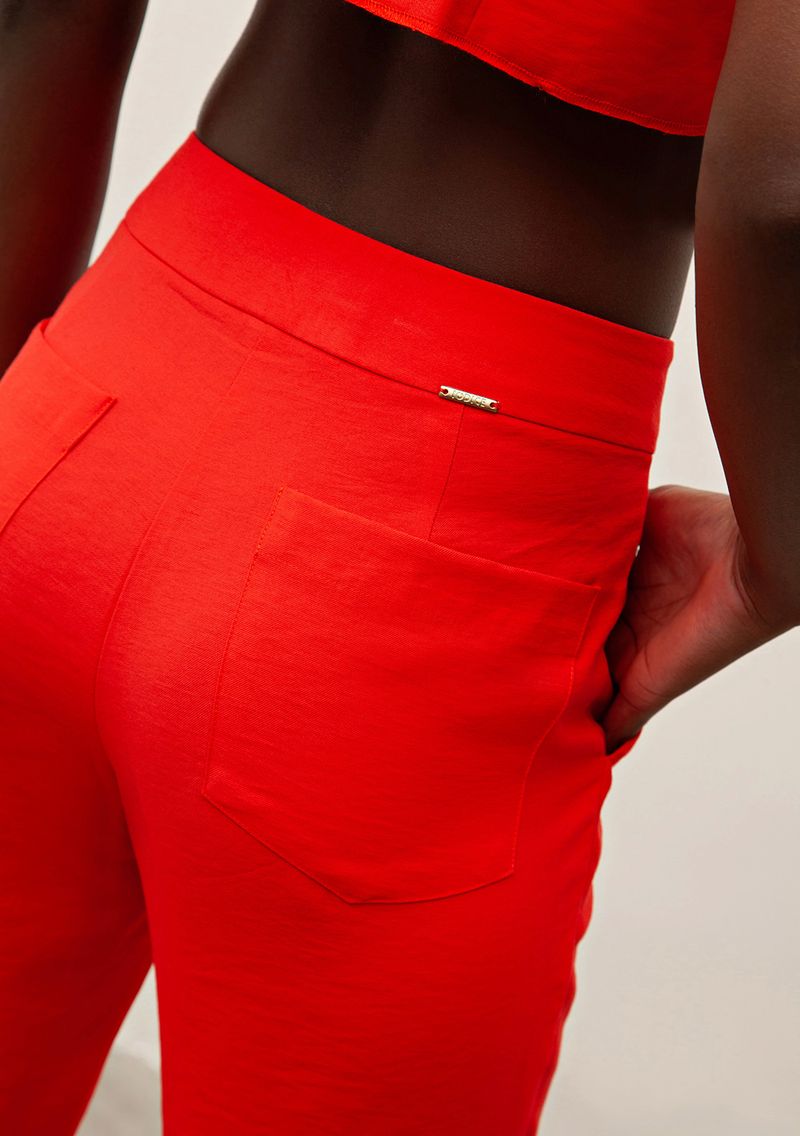 Calça Iódice Boot Cut Cós Alto Com Bolso Vermelho