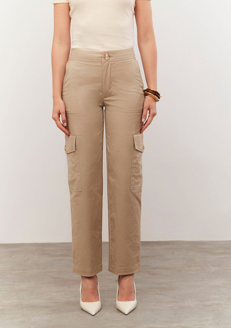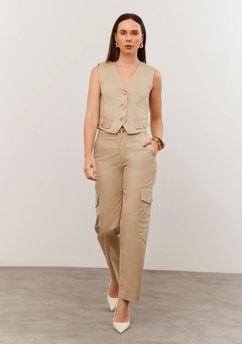 Calça Iódice Cargo Cós Intermediário Com Bolso Bege