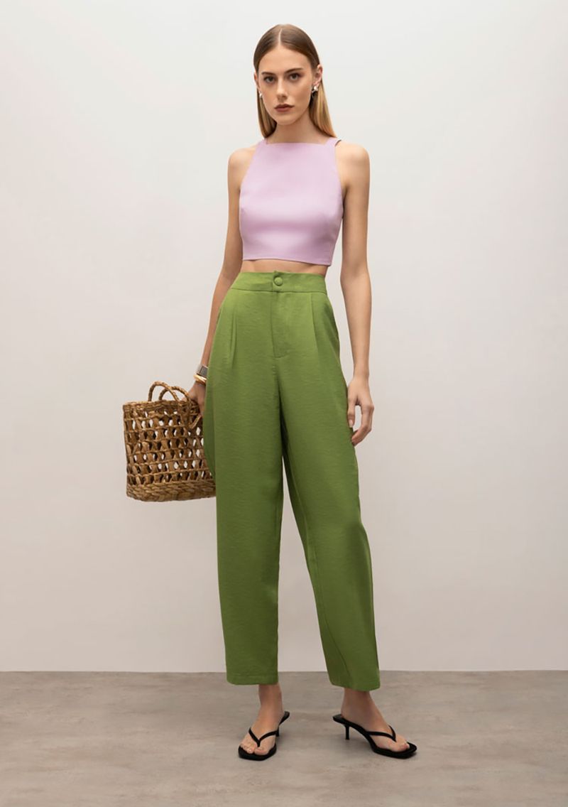 Calça Iódice Cenoura Cós Alto Bolso Faca Verde