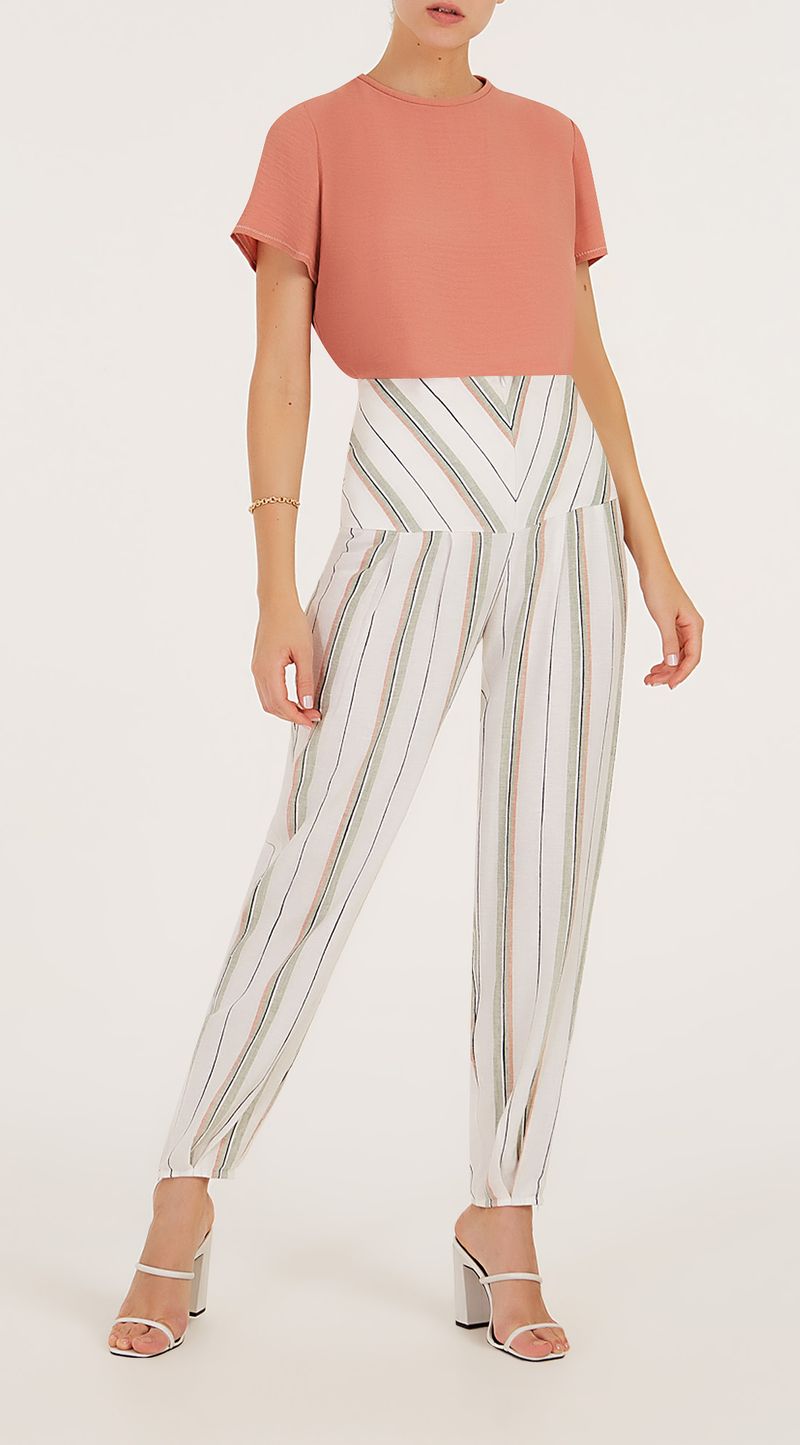 Calca Iódice Cenoura Cós Largo Listrada Off White