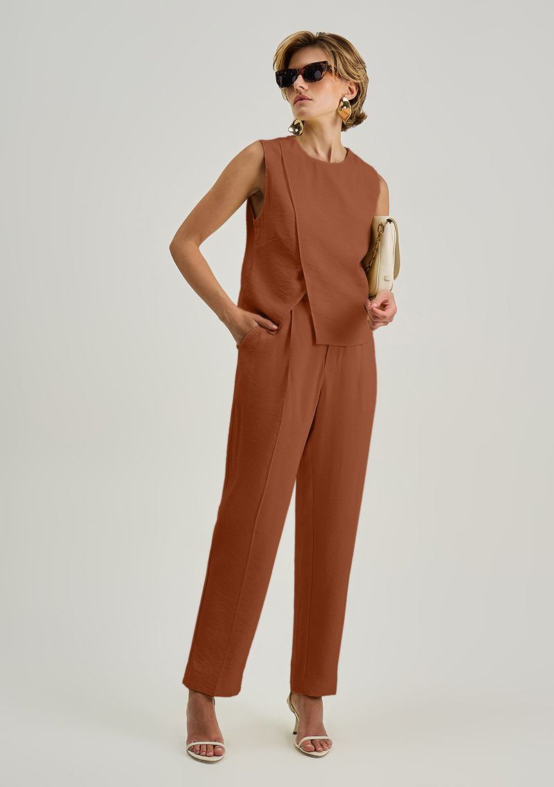 Calça Iódice Cigarrete Alta Marrom