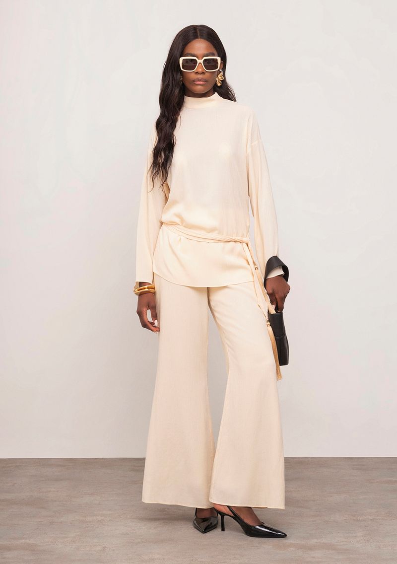 OUTLETJeansColeçõesCalçasCalçasCalça Iódice Flare Alta Bege