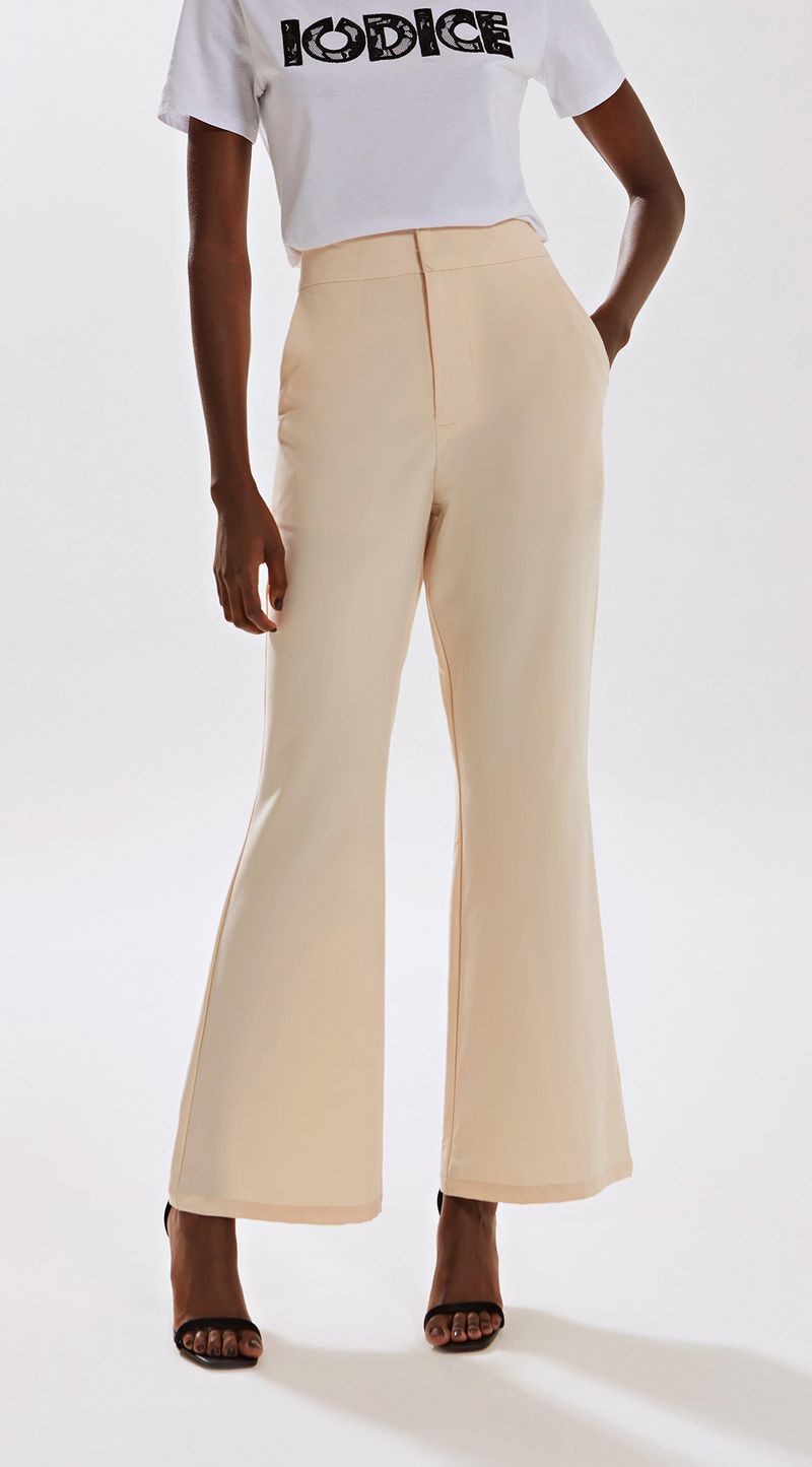 OUTLETJeansColeçõesCalçasCalçasCalca Iódice Flare Cós Alto Alfaiataria Bege