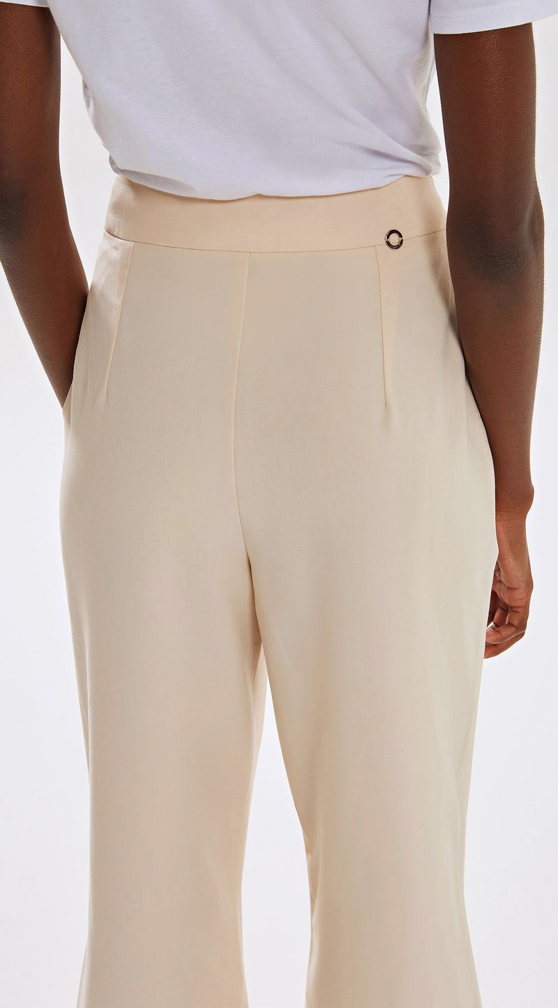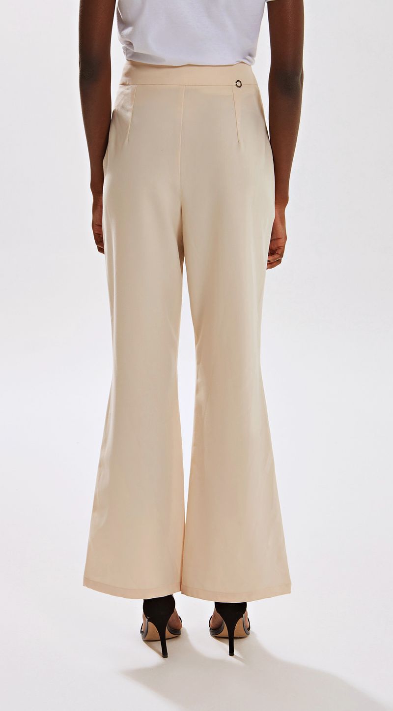 Calca Iódice Flare Cós Alto Alfaiataria Bege