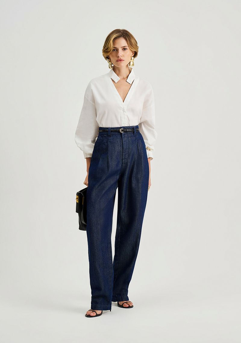 Calça Iódice Mom Alta Azul - A peça perfeita para a mulher contemporânea que deseja aliar estilo e conforto em qualquer ocasião. Feita com uma combinação harmoniosa de algodão e liocel, esta calça jeans apresenta um corte mom de cintura alta, proporcionando um ajuste impecável e um toque suave ao corpo. Parte da coleção Neoclássico, a calça reflete a fusão entre o clássico e o moderno, ideal para compor looks sofisticados, seja para o trabalho ou eventos noturnos. Combine com blusas leves e acessórios dourados para um visual irresistível. Os acessórios não acompanham as peças.