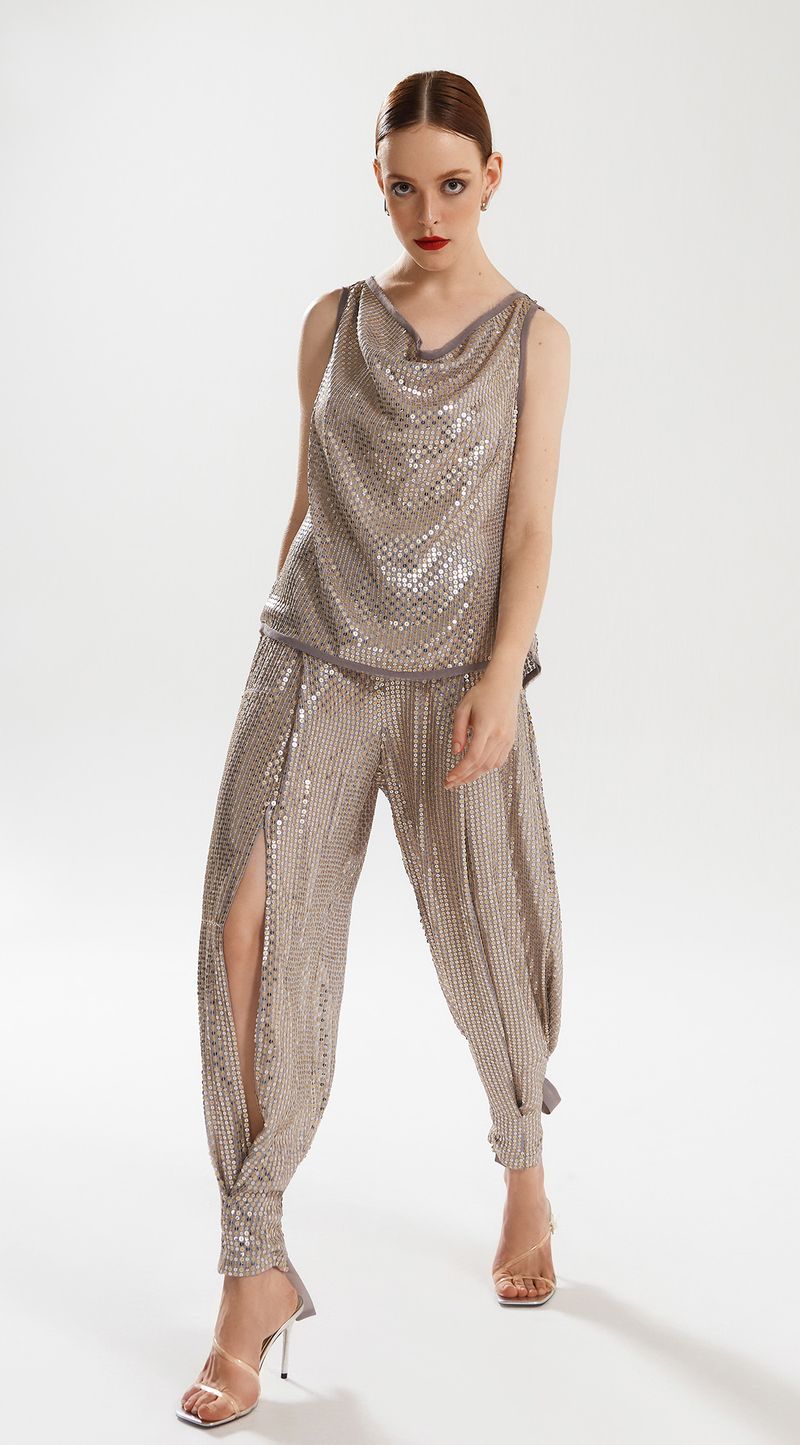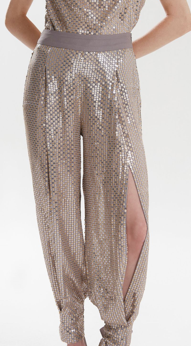 Calca Iódice Reta Cós Alto Amarração Barra Prata