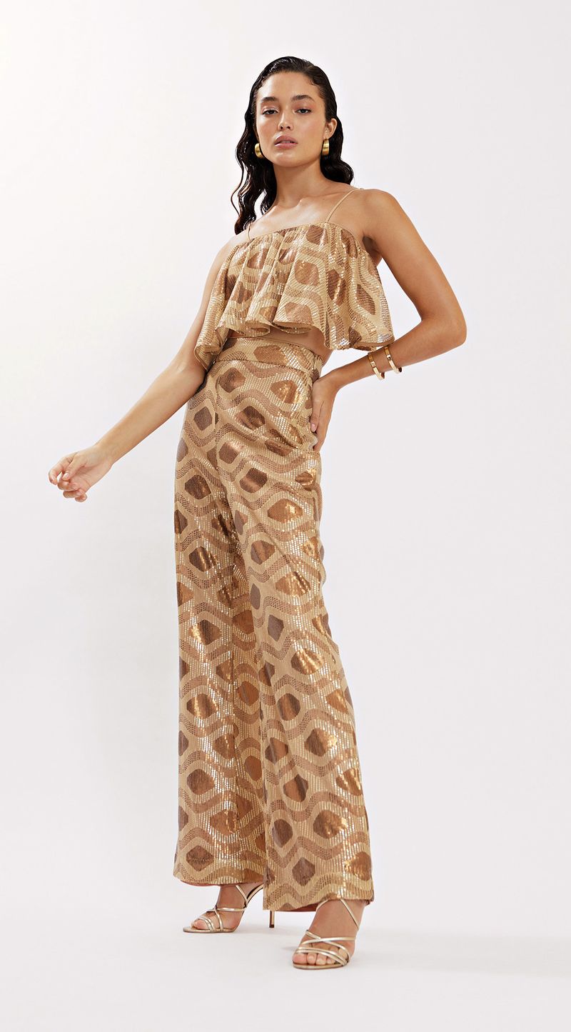 Calca Iódice Reta Cós Alto Bolso Faca Dourado