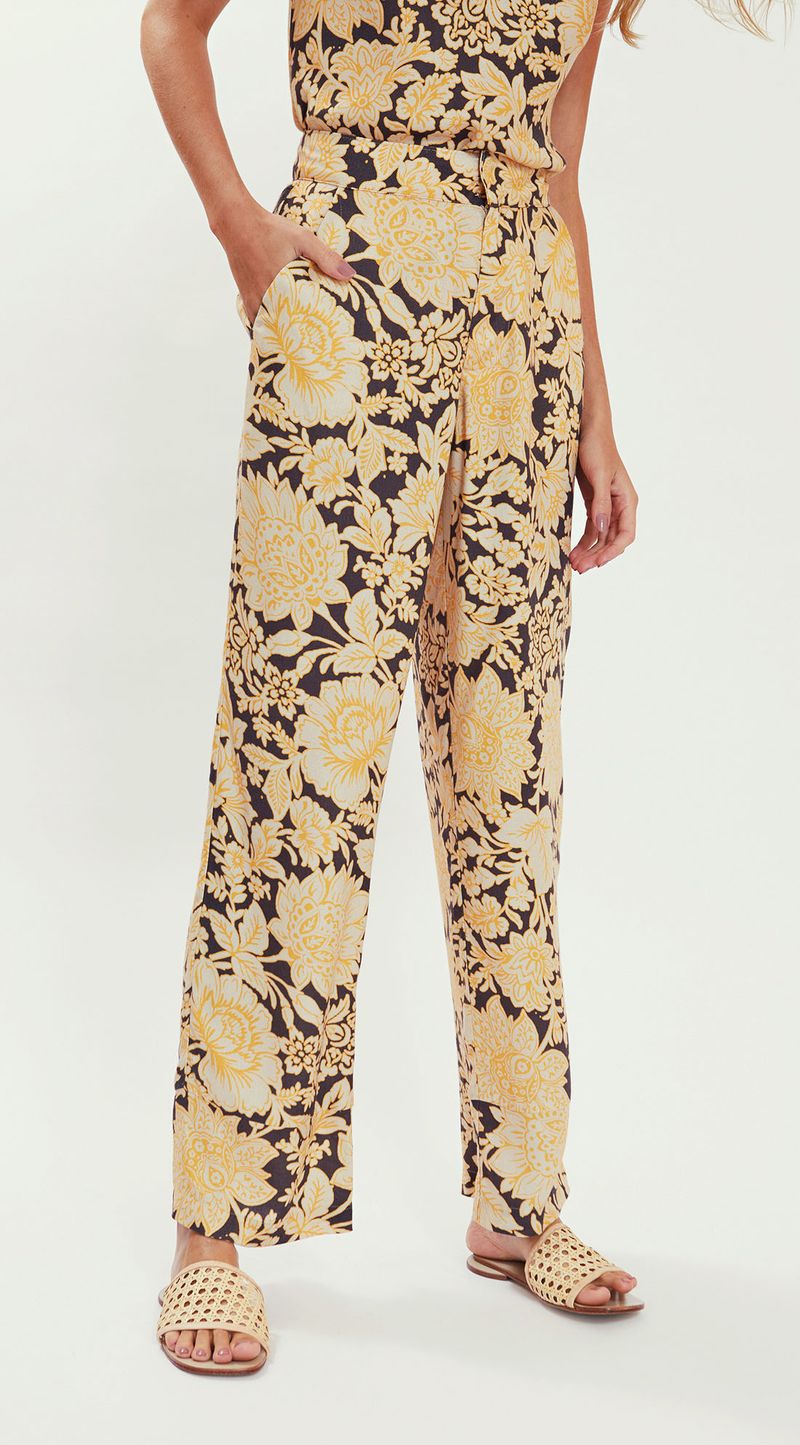 Calca Iódice Reta Cós Alto Bolso Faca Preto
