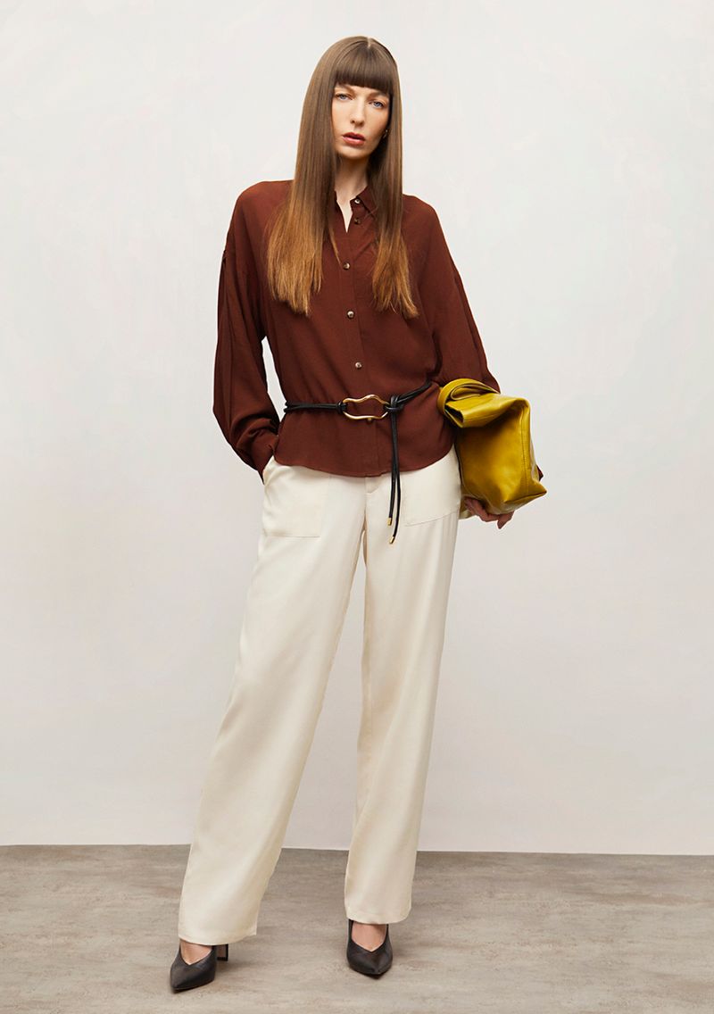 Calça Iódice Reta Cós Intermediário Com Bolso Bege