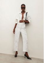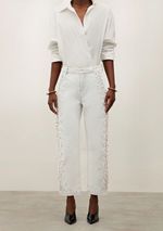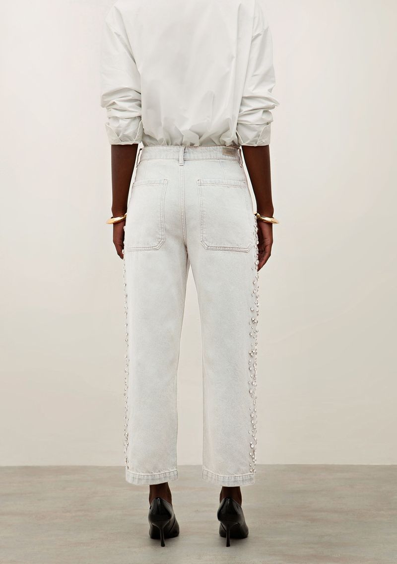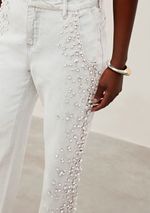 Calça Iódice Reta Cós Intermediário Com Bordado Off White