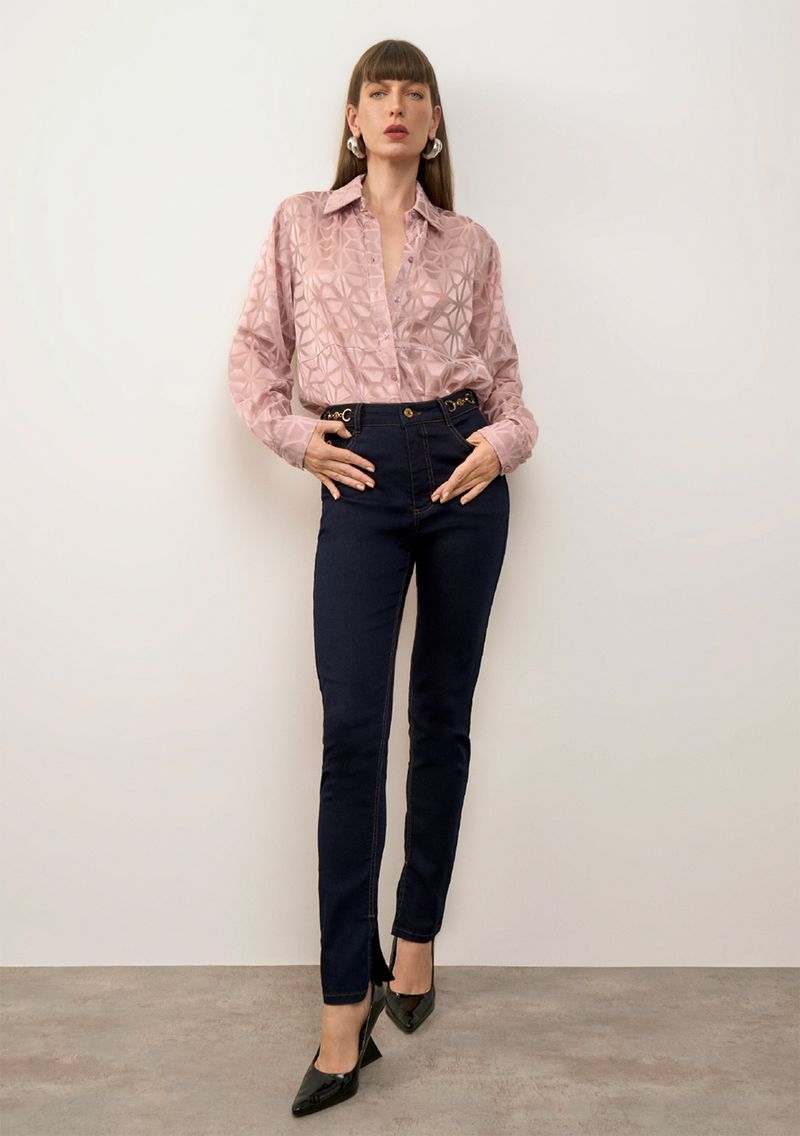 Calça Iódice Skinny Alta Azul: Sinta o poder da sofisticação em cada detalhe dessa peça essencial. Com modelagem skinny e cintura alta, ela valoriza suas curvas com elegância. Confeccionada em jeans premium, mistura algodão, poliéster e elastano, proporcionando conforto e ajuste perfeito ao longo do dia. Ideal para transitar do trabalho a eventos noturnos, sua cor azul é versátil e atemporal. Combine com blusas fluídas para um look diurno ou blazers estruturados para a noite. A coleção "Edge of Light" reflete a essência do contraste entre o clássico e o contemporâneo, capturando a luz em nuances únicas. Complete seu guarda-roupa com esta peça indispensável e descubra a arte de vestir-se com intenção. **Acessórios não acompanham as peças.**