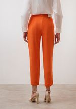 Calça Iódice Slim Cós Alto Bolso Faca Laranja