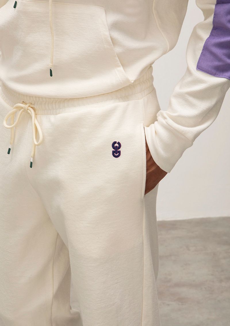 Calca Jogger Cós Elástico Com Nervuras Off White