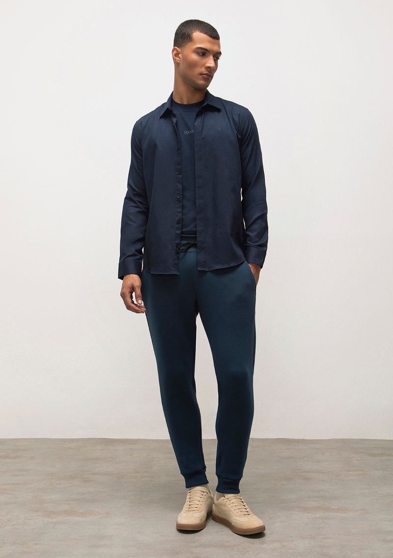 OUTLETMasculinoCalçasCalca Reta Cós Intermediário Com Silk Iodice Azul Marinho