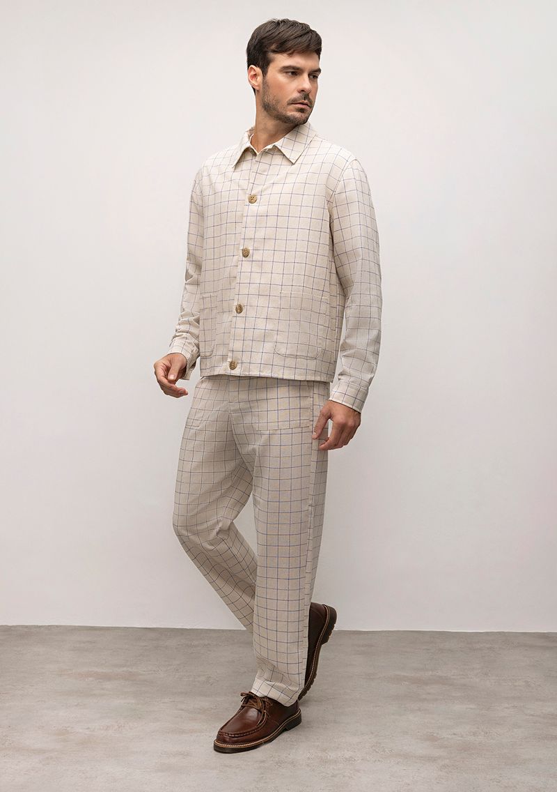 OUTLETMasculinoCalçasCalça Reta Cós Intermediário Detalhe Fio Tinto Cru