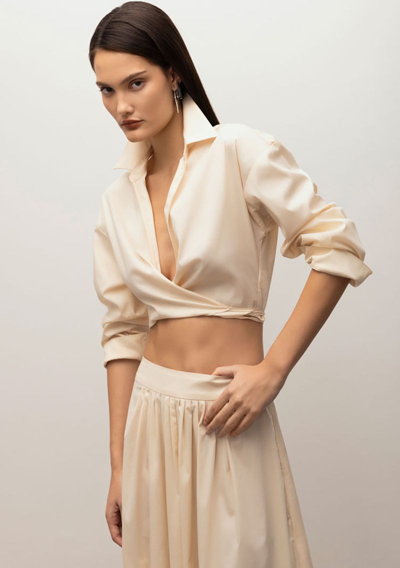 OUTLETColeçõesCamisasCamisa Iódice Manga Longa Com Amarração Bege