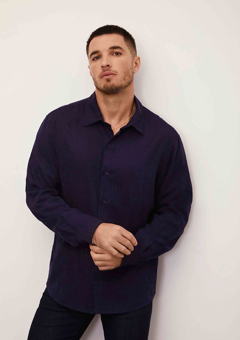 MasculinoCamisasCamisa Sólta Decote V Manga Longa Padrao Azul
