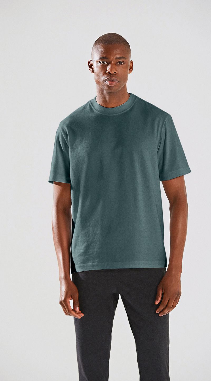 Camiseta Oversized Decote Redondo Básica Azul