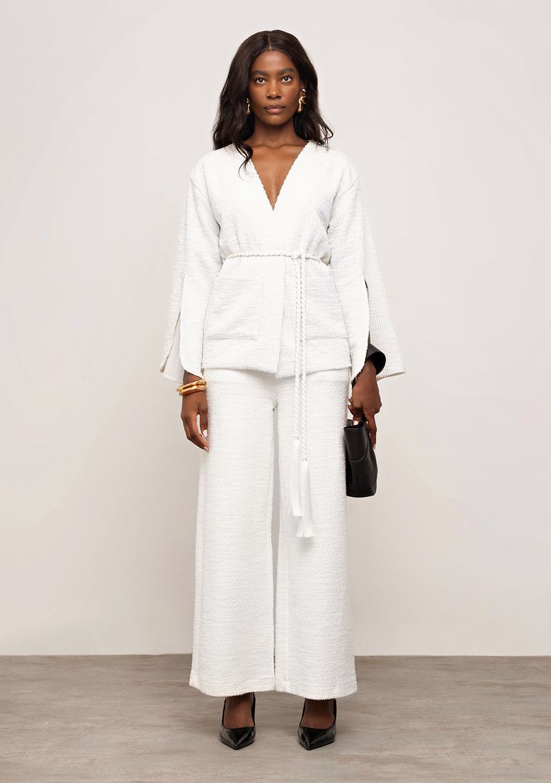 Casaco Iódice Solto Manga Longa Padrão Off White