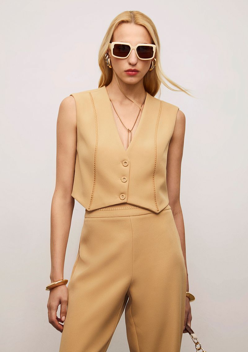 OUTLETColeçõesColetes e KimonosColete Iódice Ajustado Sem Manga Cropped Bege