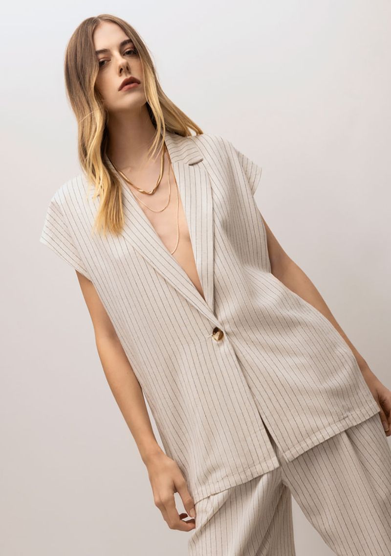 Colete Iódice Alongado Detalhe Botão Cinza