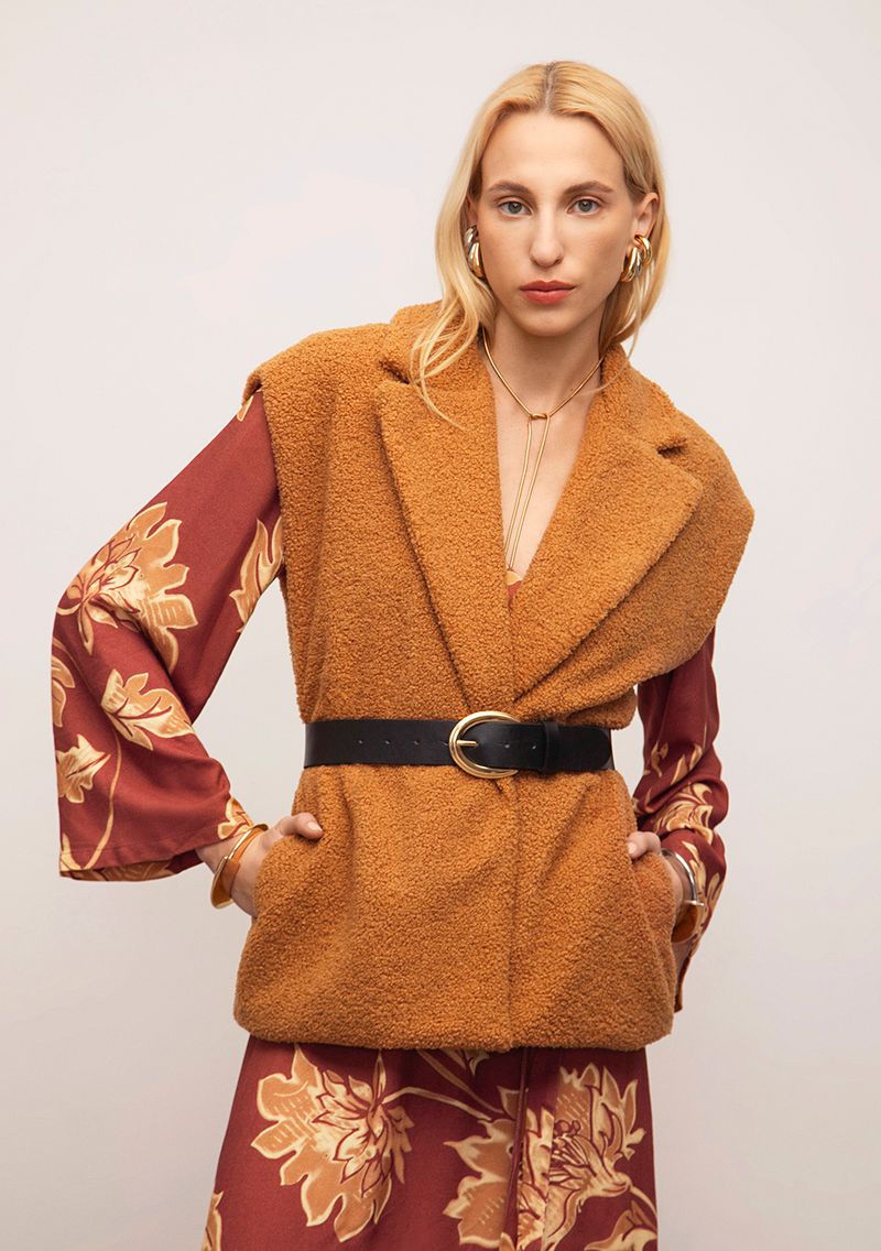 Envolva-se com a sofisticação do Colete Iódice Solto Sem Manga Alongado Marrom, uma peça que une o charme da tradição com a modernidade vibrante. Inspirado na estética japonesa e na filosofia Wabi-Sabi, este colete é a essência da originalidade, com sua modelagem alongada que valoriza cada movimento com leveza. Feito em poliéster com toque de elastano, ele oferece conforto e elegância, ideal para ocasiões casuais ou formais. Combine-o com calças de alfaiataria ou vestidos fluidos para um visual atemporal. Sinta-se confiante e autêntica, transformando cada momento em uma experiência inesquecível. *Os acessórios não acompanham a peça.*