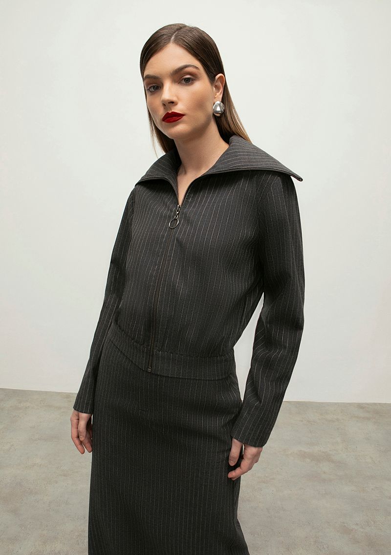 Jaqueta Iódice Cropped Detalhe Gola Cinza