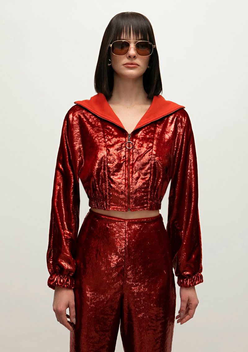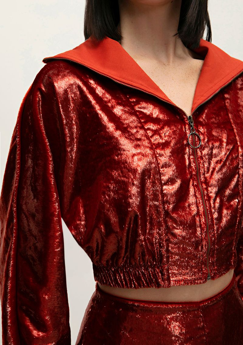 Jaqueta Iódice Reta Detalhe Zíper Laranja