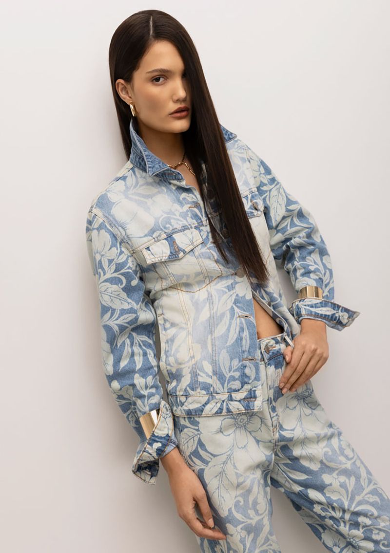 OUTLETJeansColeçõesJaquetasJaquetas e CasacosJaqueta Iódice Trucker Detalhe Estampa Jeans