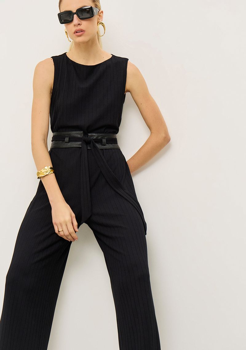 Macacão Iódice Ajustado Decote Canoa Sem Manga Longo Preto