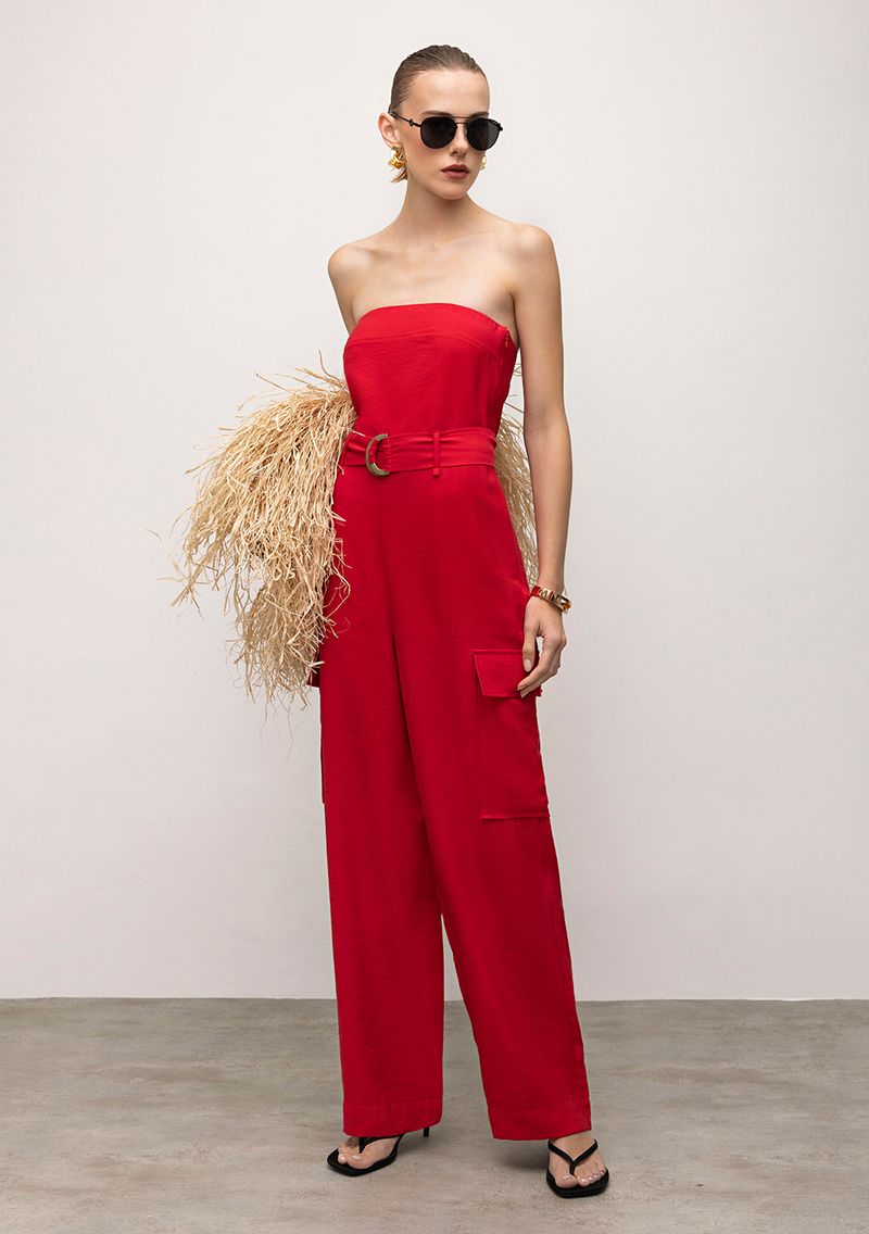 OUTLETColeçõesMacacões e MacaquinhosMacacão Iódice Reto Com Bolso Vermelho
