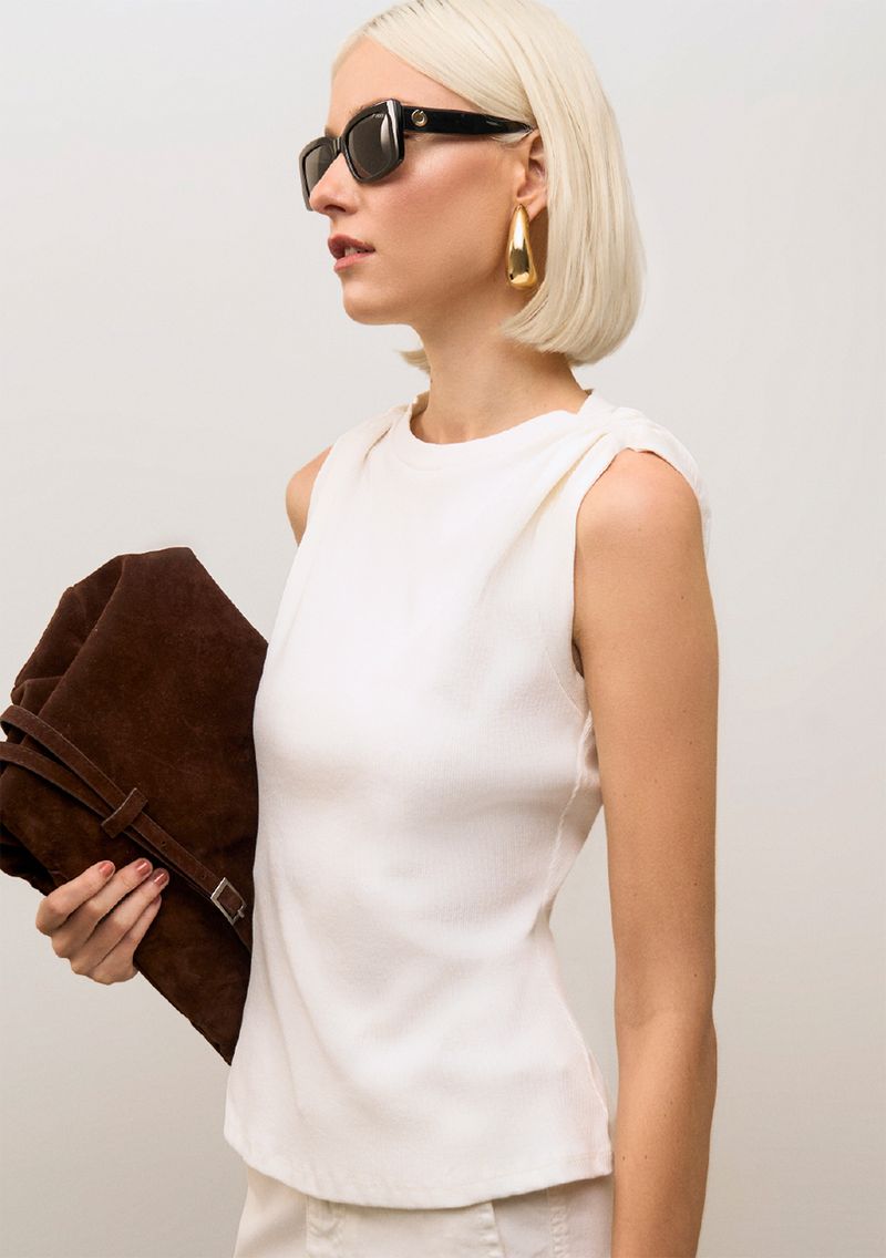 Regata Iódice Ajustada Decote Careca Padrão Off White